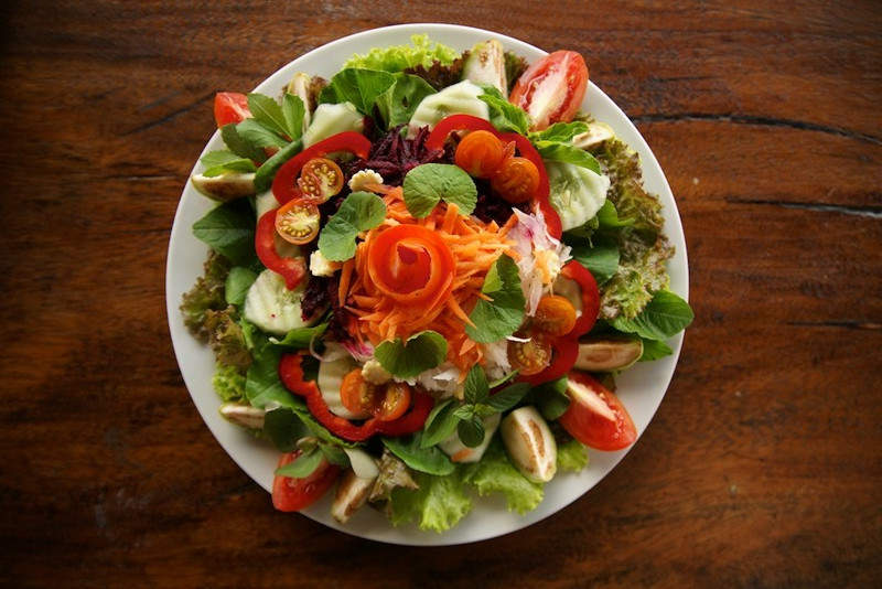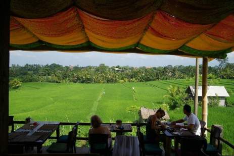 The rustic bamboo pavilion that rises like a ship in a sea of lush green rice paddys provides a quintessential Balinese setting with a focus on organic food and healthy elixirs. Bodag Maliah translates as overflowing basket, offering salads literally picked fresh from the gardens of Sari Organik. You can even pick them yourself!